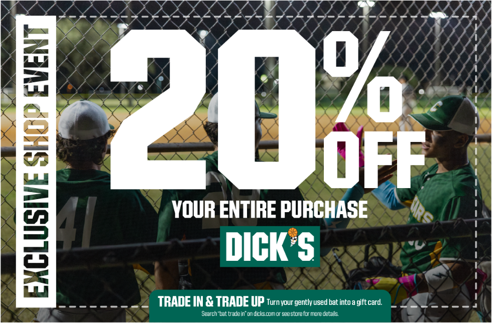 DICK’S Sporting Goods is providing all athletes and families of Mosinee Youth Baseball with exclusive coupons, so you will always be able to save money at DICK’S Sporting Goods. Click on the coupon link below. These coupons are for in-store purchases only and are valid 3/13/2026 - 3/16/2026. The coupons can be printed off or displayed from any mobile device to be redeemed at the store. You can also access these coupons at any time by visiting the Mosinee Youth Baseball website and clicking into the DICK’S Sporting Goods web banner.